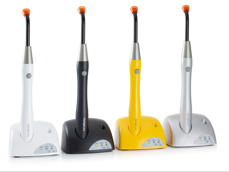 Die schnurlose LED Polymerisationslampe für den flexiblen Einsatz von Zimmer zu Zimmer. Der leistungsstarke und langlebige Lithium-Ionen-Akku erlaubt 320 Zyklen à 10 sec in Folge, der Ladevorgang dauert nur 120 min. Mit dem eingebauten Radiometer kann die Leistung kontrolliert werden. starlight pro härtet eine 2 mm Schicht in nur 10 sec absolut zuverlässig aus und ist mit 105 g ultraleicht. Wählbar sind die Modi „Fast-Curing” und „Slow Rise” (Softstart).