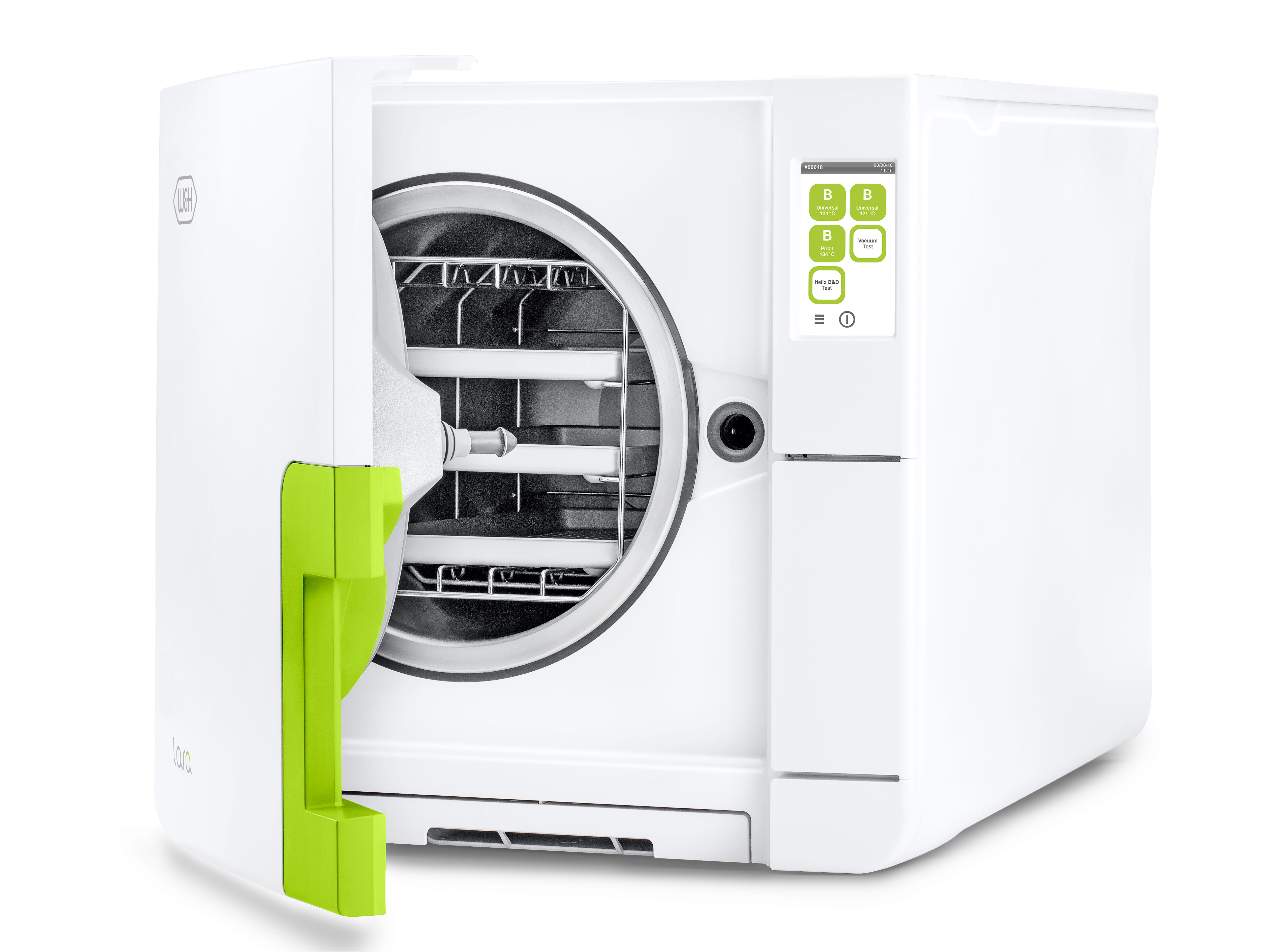 Sie müssen kein Design-Liebhaber sein um die neuen Lara Sterilisatoren schätzen zu lernen. Sie werden sie auch so überzeugen: durch eine Berührung der glatten Oberflächen, durch die einfache Beladung - und durch die großzügigen Flat-Farb-Displays, mit denen sie schnell und unkompliziert durch die intelligente Menüstruktur surfen.